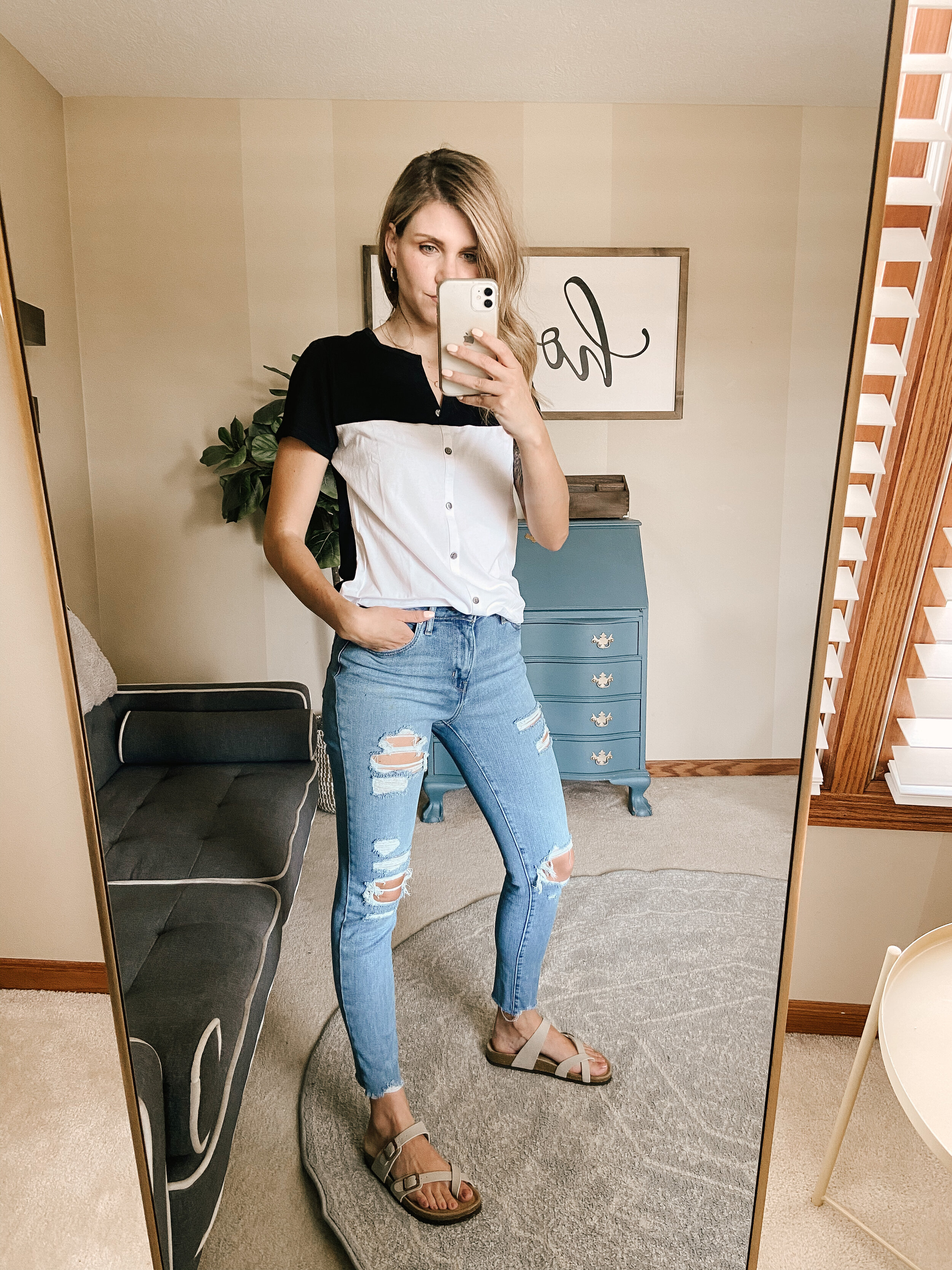 Button Down Henley Color Block Top